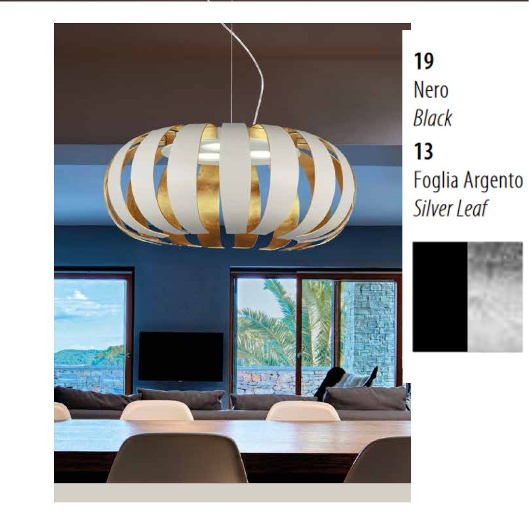 Die Wand- und Deckenleuchte Geo LED ist in unterschiedlichen Größen / Ausführungen und in den Farbkombinationen weiß/weiß, weiß/blattgold, weiß/blattsilber, schwarz/blattgold, schwarz/blattsilber, schwarz/schwarz.